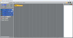 この真ん中の画面に左のブロックを持ってきて、つなぎ合わせていって文字を書かせるプログラムを書いていきます。