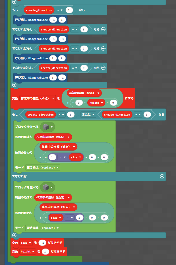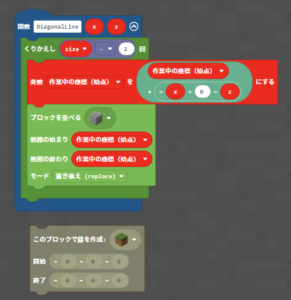 途中で出てきた 呼び出しDiagonalLineというのは、斜めの線を描くために作った関数で、中身は下の画像のようになっています。