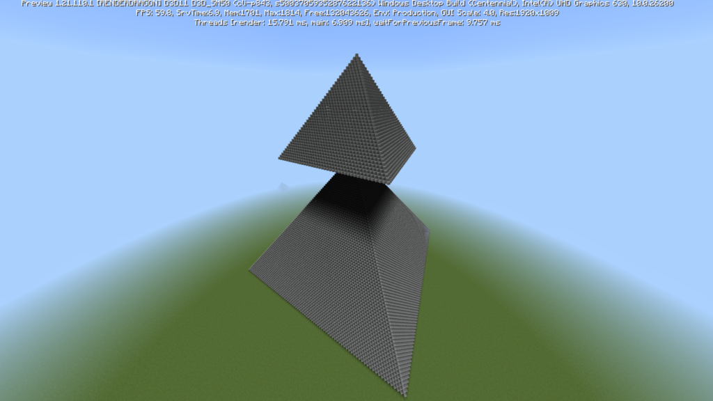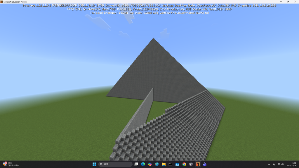 マインクラフトでのピラミッドは、色々形があると思いますが、今回は斜めにブロックを置いて作ります。
